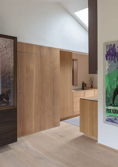 Eine kontinuierliche Erweiterung eines bestehenden Wohnhauses aus den 1970er Jahren im Vorort von Kopenhagen - die Ergänzung beinhaltet zwei kleinere Baukörper mit einem Gästeraum und Atelier, welche schrittweise als Um- und Anbau auf einem schmalen Hanggrundstück im Sinne eines Repair und Reuse entstanden.